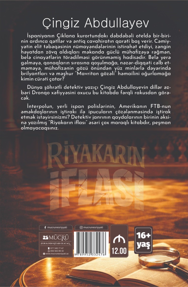 İnterpolun, yerli ispan polislərinin, Amerikanın FTB-nun əməkdaş-larının iştirakı ilə ipucuların çözələnməsində iştirak etmək istəyirsinizmi? Detektiv janrının qaydalarının birinin əksinə yazılmış “Riyakarın iflası” əsəri çox maraqlı kitabdır, peşman olmayacaqsınız.